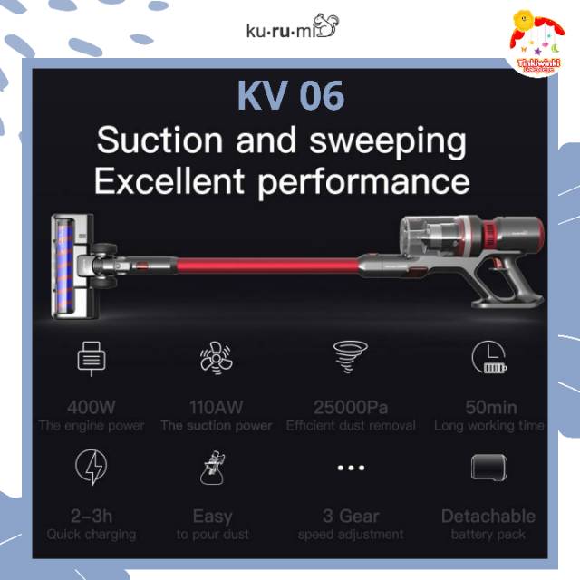 Kurumi Kv06 Powerful Cordless Stick Vacuum Cleaner Include Mop Brush Dan Bed Brush Shopee Indonesia